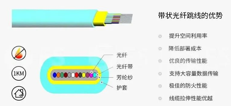 结构:带状光纤由多个细小的光纤平行排列组成,通常呈带状。